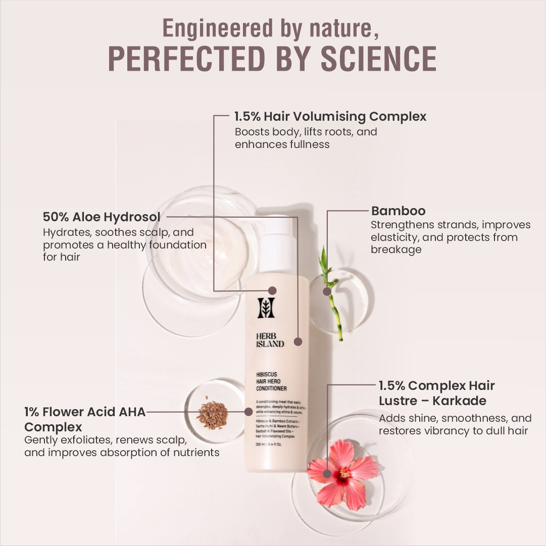 Aloe Barbadensis Leaf Hydrosol, Cetyl Alcohol, Cetostearyl Alcohol, Hibiscus Sabdariffa Flower Extract, Bambusa Vulgaris (Bamboo) Extract, Behentrimonium Chloride, Cetrimonium Chloride, D-Panthenol, Cocos Nucifera (Coconut) Oil, Linum Usitatissimum Seed (Flaxseed) Oil, Polyquaternium-10, Butylene Glycol, Behentrimonium Methosulfate, Theobroma Cacao Seed (Cocoa) Butter, Butyrospermum Parkii (Shea) Butter, Dimethicone-350, Cyclopentasiloxane & Dimethiconal, Simmondsia Chinensis (Jojoba) Seed Oil, Prunus Amygdalus Dulcis (Sweet Almond) Oil, Hair Lustre Karkade (Hibiscus Sabdariffa Flower Extract), HairVolumizing Complex (Gleditsia Australis Seed Extract, Lamium Album Flower Extract, Panax Ginseng Root Extract), Plukenetia Volubilis (Sacha Inchi) Butter, Neem Butter, Elaya Renova (Olea Europaea Leaf Extract, Pentylene Glycol, Cyclodextrin, Citric Acid, Cyamopsis Tetragonoloba Gum, Xanthan Gum, Tocopherol, Phytic Acid), Baobab Lipactive (Adansonia Digitata Seed Oil), Flower Acid AHA Complex (Keto-Hydroxy Acids, Polysaccharides, Hibiscus Sabdariffa, Sodium Benzoate, Potassium Sorbate), Tocopherol Acetate (Vitamin E), Phenoxyethanol & Ethylhexylglycerin, Hyaluronic Acid, Plant Derived Lactic Acid, Sodium Citrate, Potassium Sorbate, Sodium Benzoate, Polycitronellol, Perfume.